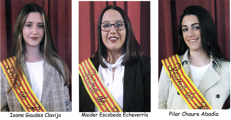 Reinas: Ioane Gaudes Clavijo, Maider Escobedo Echeverría y Pilar Chaure Abadía.